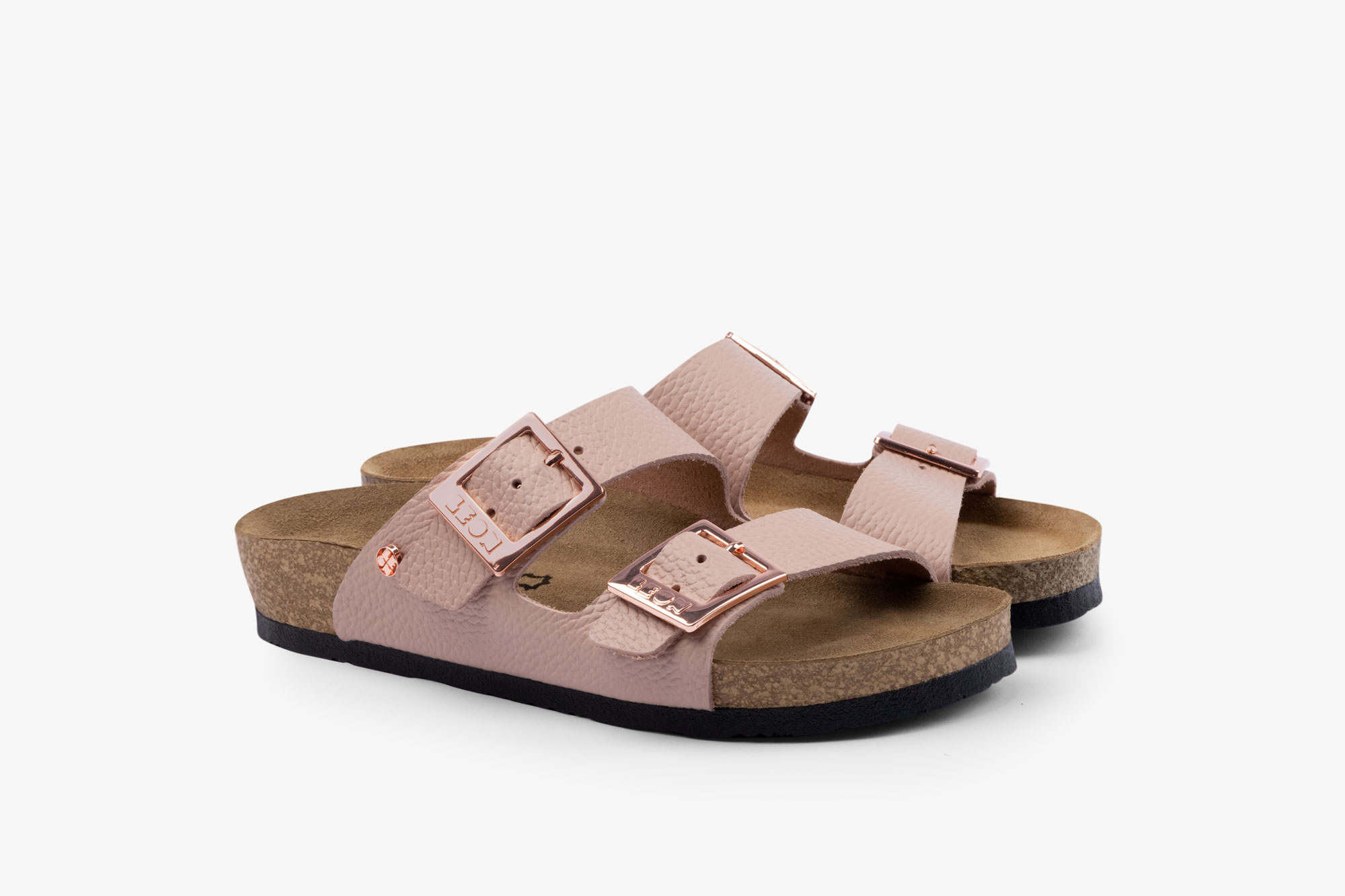 Elegantne ženske natikače savršen su izbor za svakodnevnu udobnost i moderan izgled. Model je izrađen s dva široka remena koji se prilagođavaju stopalu pomoću dekorativnih kopči, pružajući sigurnost i stabilnost pri hodu. Anatomski oblikovan uložak od pluta i gume osigurava prirodan položaj stopala i dugotrajnu udobnost, dok lagani đon omogućava lako kretanje tijekom cijelog dana.